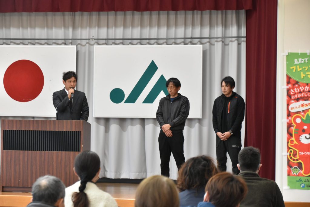 ▲総会の中で2名の新規就農者を紹介