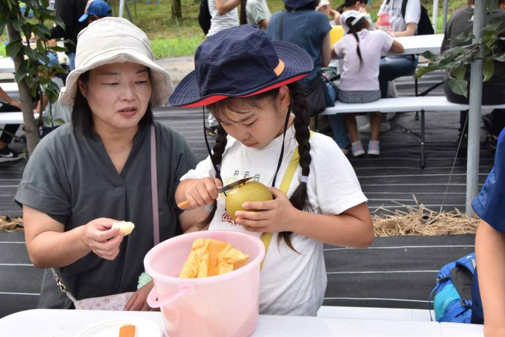 梨「二十世紀」と「新甘泉」の収穫を楽しむ
