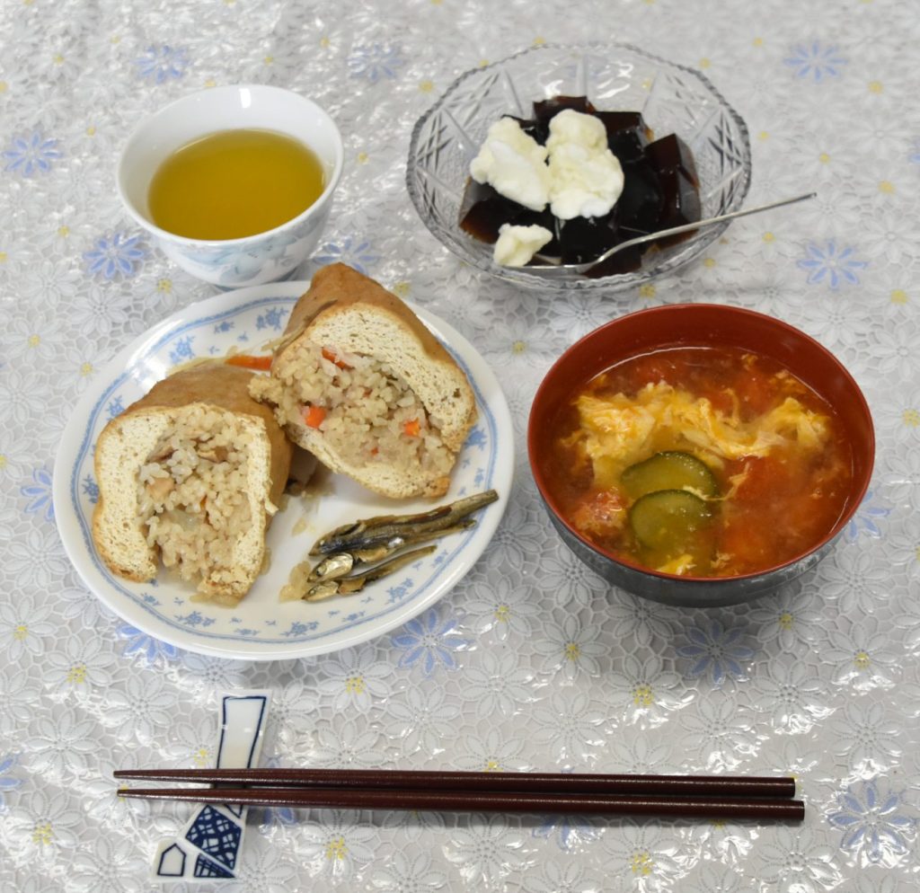 その後、同じグループで料理講習を行い、JAとっとり女性協議会が作成したオリジナルレシピ集を参考に、「いただき」、「ミニトマトスープ」など4品を調理。西部地区の郷土料理の「いただき」を作るのを楽しみにしてきたという部員も少なくなく、レシピをよく見ながら協力して作り上げました。