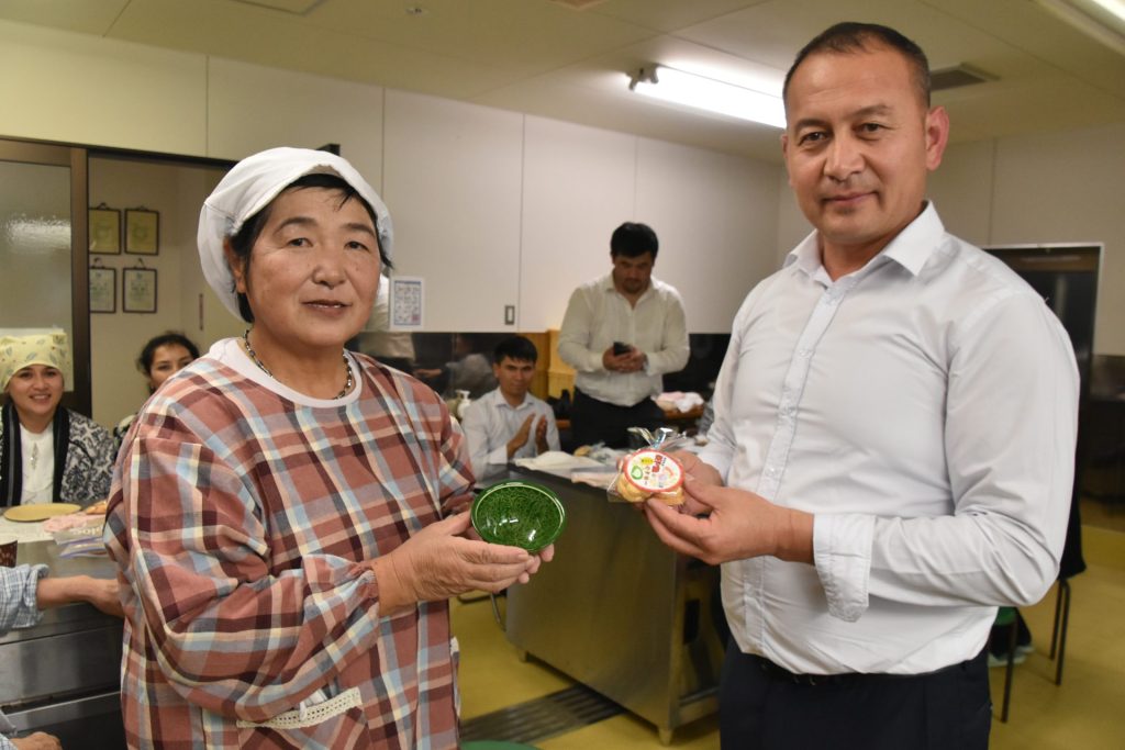 そして最後には、ウズベキスタンの伝統工芸品のプレゼントをいただき、米夢マイムからは米粉クッキーをプレゼントしました。