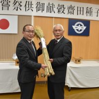 献穀米奉仕者 バトンをつなぐ 三朝町で種子引き渡し式開催