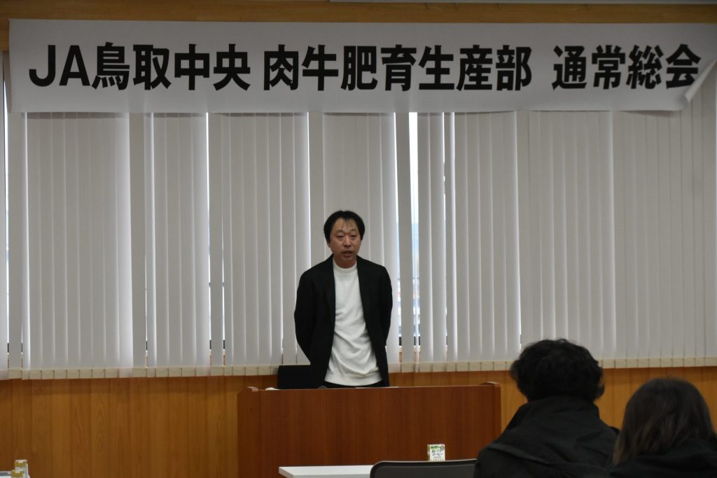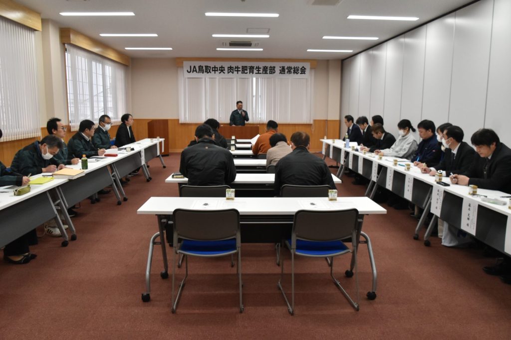 JA鳥取中央肉牛肥育部生産部は、北栄町で第24回通常総会を開き、2025年度の事業について報告しました。25年度は、黒毛和種と交雑牛を合わせて649頭出荷し、販売額5億5268万円を計上しました。また、年間を通じた最高価格賞の表彰を行いました。