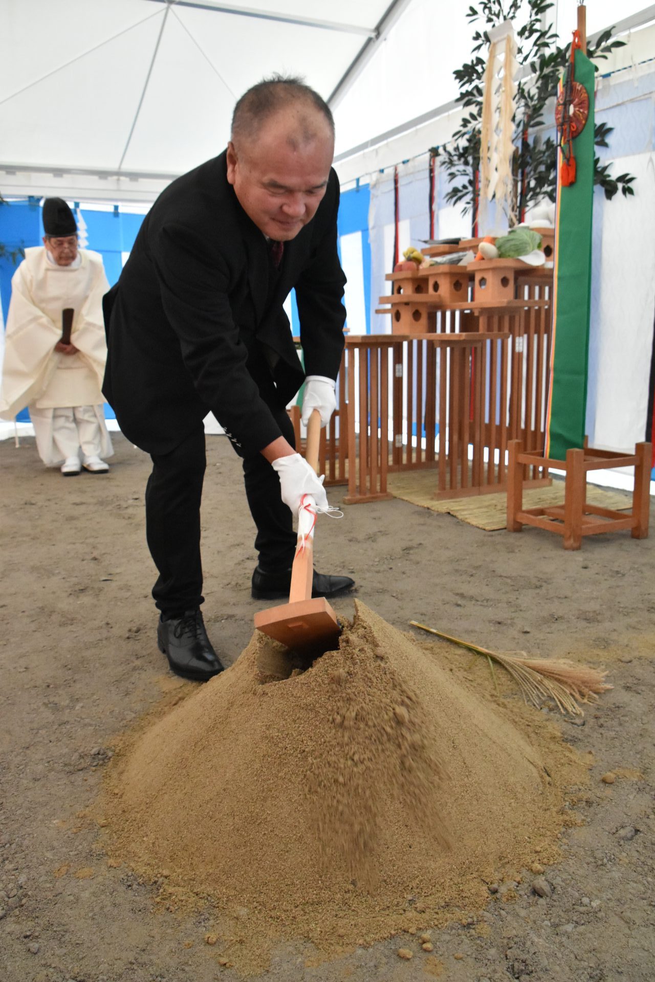 地鎮祭を行い、土地を清め安全に建設できるよう祈願してもらいました