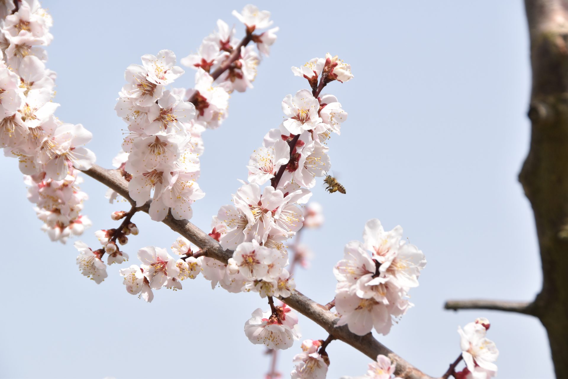 梅の木がある湯梨浜町野花地区は、丘陵地帯にあるため梅林と一緒に東郷湖や日本海を見ることができます。ここ数日、天気の良い日が続き園地ではハチも飛びかっていました。