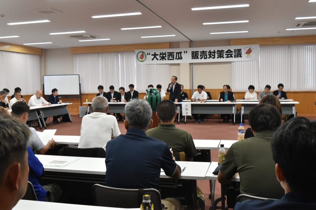 同協議会の村岡高志会長は「猛暑でスイカづくりが難しくなってきているが、栽培指導をしっかり考えて来年以降も高品質なものをしっかり届けていきたい」と来季への意気込みを語りました。