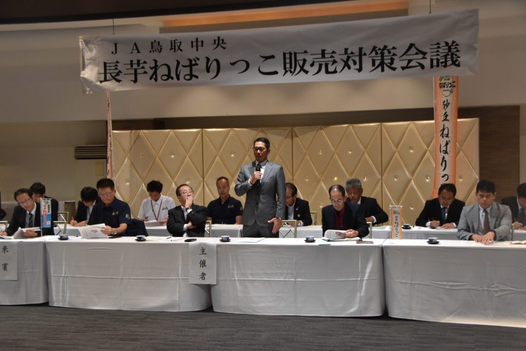 長芋生産部は、倉吉市で2025年度長芋・ねばりっこ販売対策会議を開き、冷蔵施設を活用した計画的な出荷体制による、重点市場への安定供給の確立などを話し合いました。