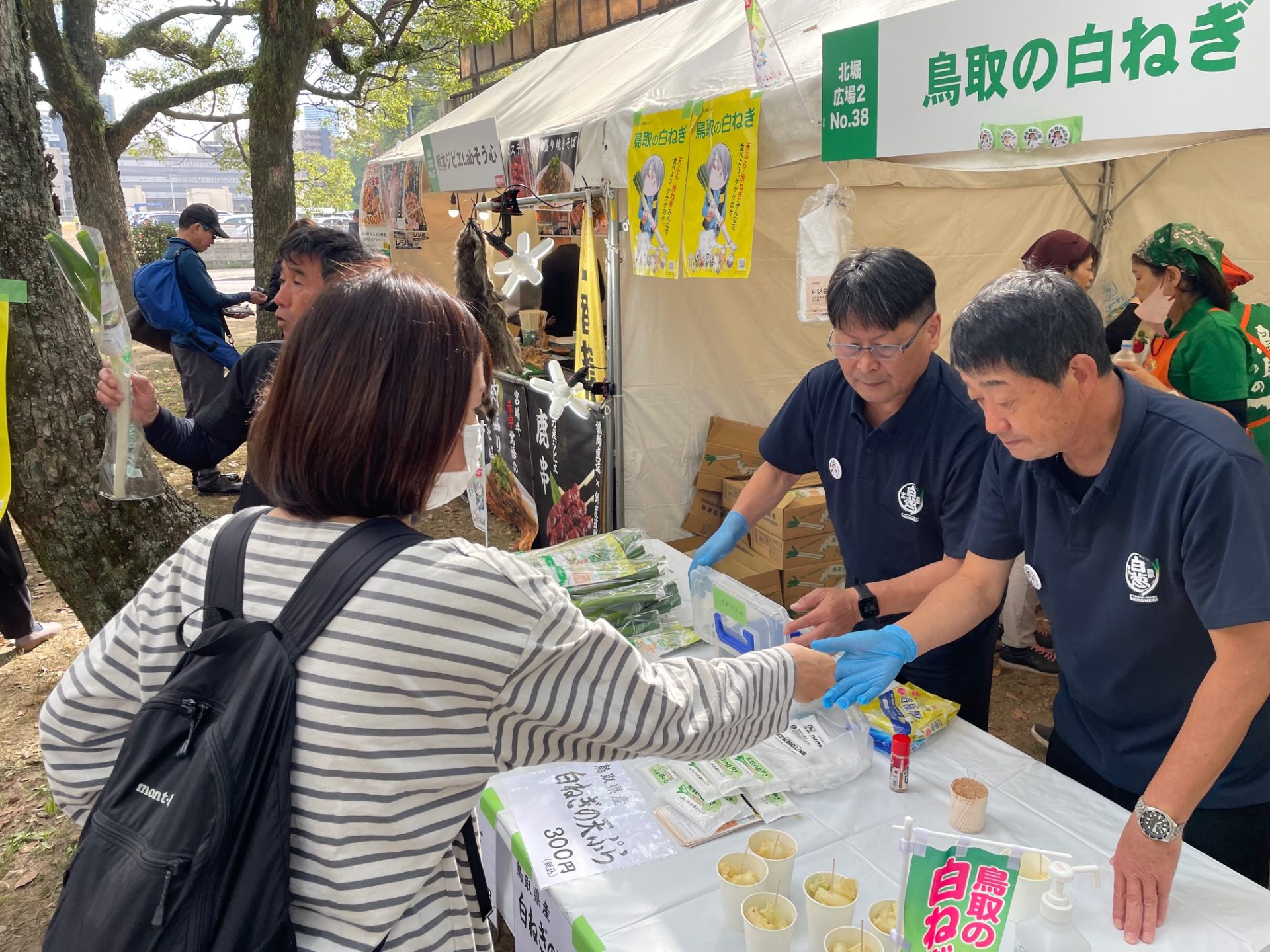 秋冬ネギの出荷シーズンが始まり、生産者は県外に出向き、鳥取の白ねぎの魅力を伝える試食販売に意欲的に取り組んでいます。