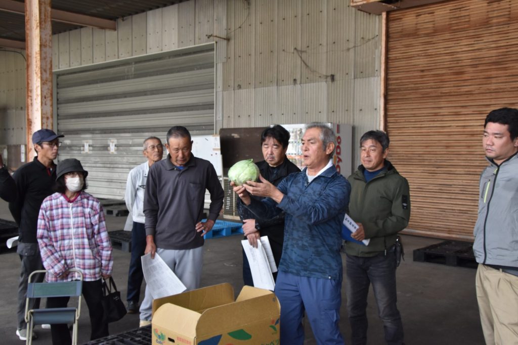 倉吉秋冬野菜生産部は、キャベツの目合わせ会を開きました。会では、出荷規格や大きさ、形状などを確認。7月の定植以降、猛暑の影響で生育が例年より1週間ほど遅れましたが、生産者の潅水管理により順調に生育しました。出荷は10月中旬から始め、来年2月まで続きます。