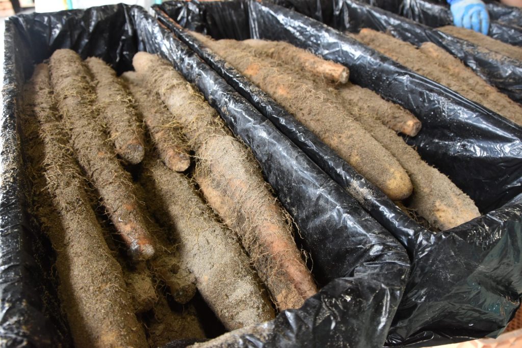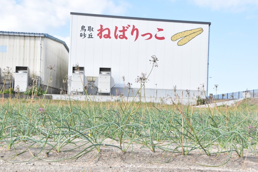 今季から同集荷場貯蔵庫の東西の壁面に、観光客からの認知度向上とブランド力の強化による単価アップを目的に「鳥取砂丘ねばりっこ」の文字を塗装。県の、「ともに目指す!産地強化支援事業「NEXT砂丘長芋・ねばりっこ次世代産地創造プラン」」を活用した取組でPRにも力を入れています。