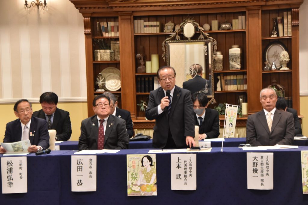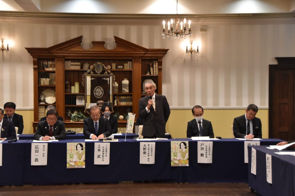 倉吉梨生産部は、倉吉市で倉吉梨販売反省会を開き、本年度の販売実績を報告しました。県オリジナル品種は、出荷量が増えたことによる安定供給で「新甘泉」が1億13万円(前年比9%増)、「秋甘泉」は3269万円(前年比23%増)と好調でした。