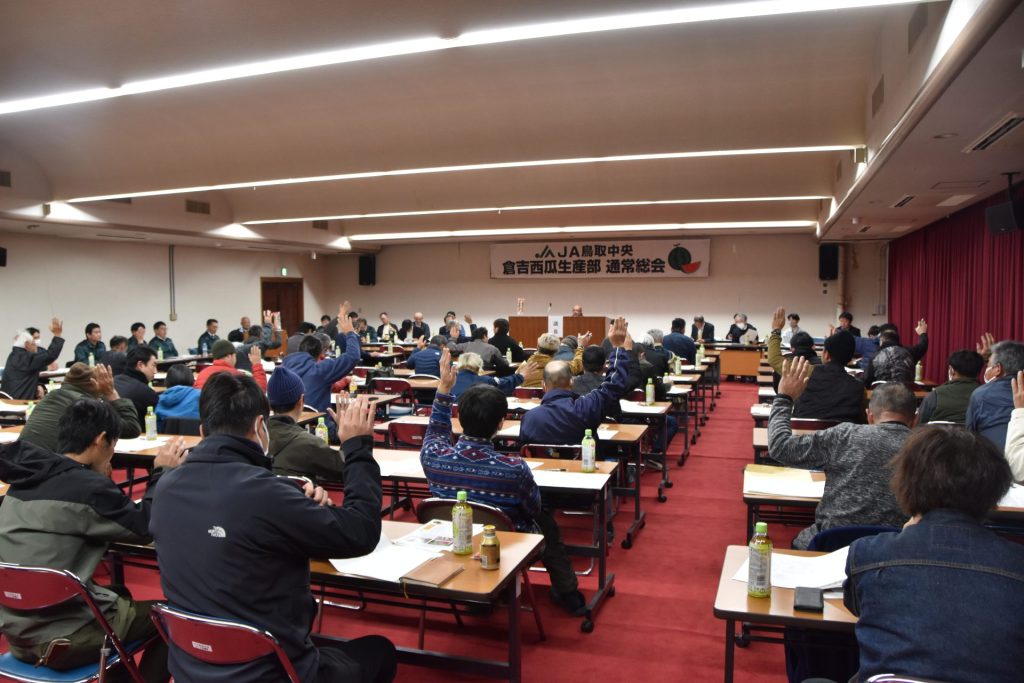 倉吉西瓜生産部会は、倉吉市のJA本所で2025年度総会を開きました。25年度の販売金額が前年を約1億2000万円上回る15億2217万円を計上。10a当たりの販売高は232万4000円と過去最高を記録したことを報告しました。
