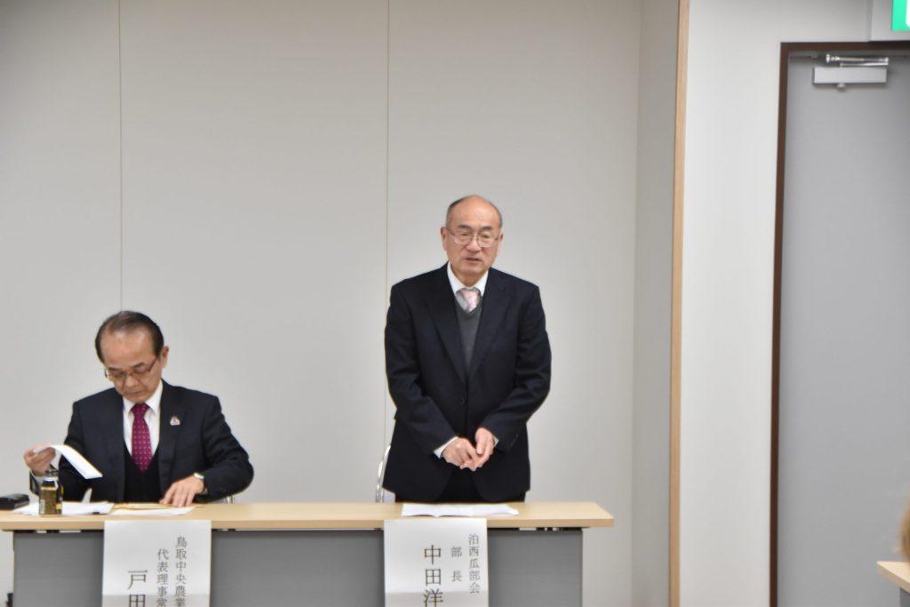 泊西瓜部会は、湯梨浜町で2025年度総会を開き、生産者や行政、JA関係者ら15人が出席しました。本年度の出荷数は5786ケース(1ケース15.5kg、前年対比129%)で、販売金額は2552万円(同126%)だったことを報告しました。