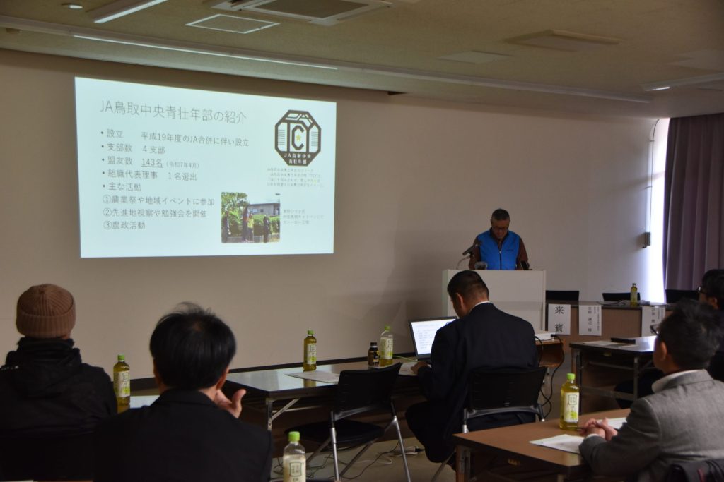 青壮年部は、倉吉市のJA本所で冬期研修会を開催しました。組織の基盤を学ぶ講演や、活動発表、パネルディスカッションを通じて、地域農業を担う若手農業者としての結束を強めました。