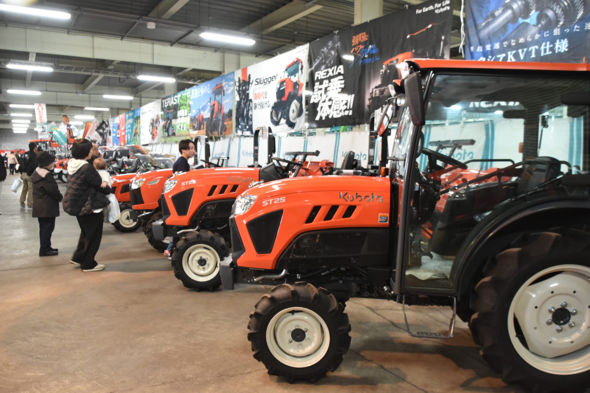 このフェアは、トラクターなどの農機のほかに、ガス器具や自動車が一挙に集まる年に1度の大きな展示会で、多くの来場者でにぎわいました。