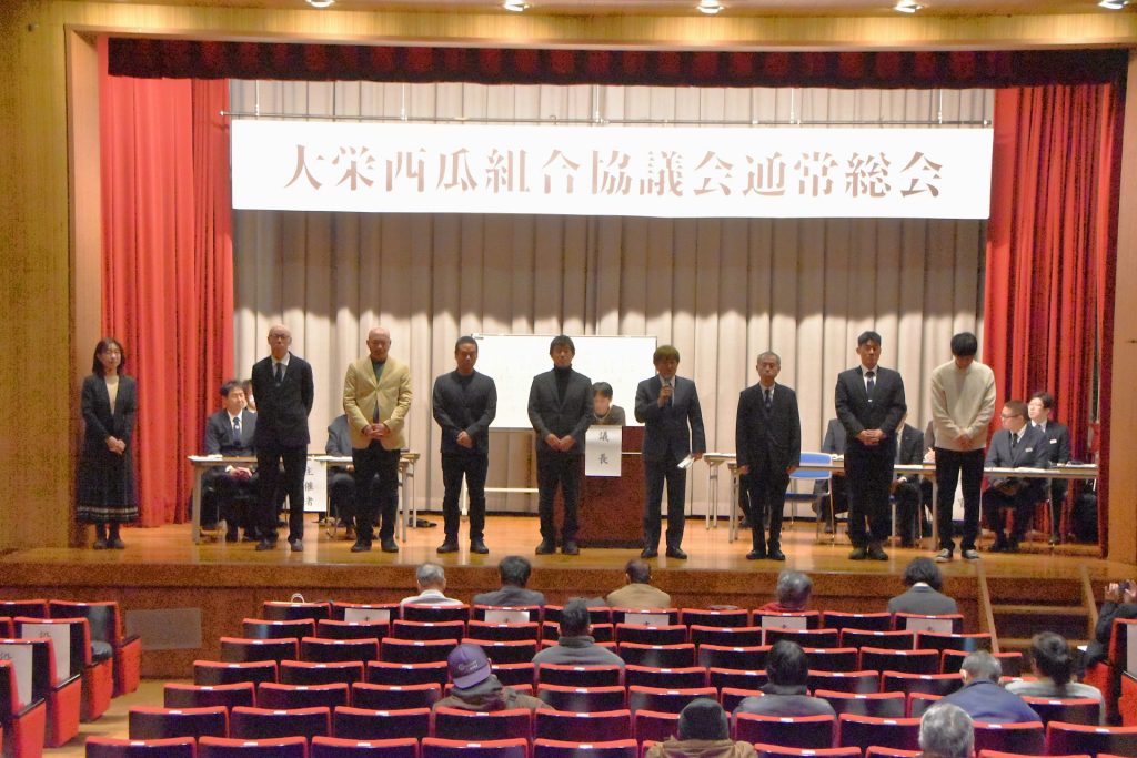 JA鳥取中央大栄西瓜組合協議会は、北栄町で第54回通常総会を開き、2025年度の事業報告や26年度の事業計画などを承認しました。生産者や行政、JA関係者ら約120人が出席。役員改選では、会長に前田修志さん、副会長に村岡東樹さんを選任しました。