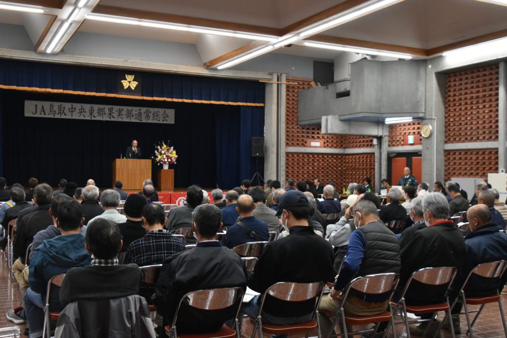 JA鳥取中央東郷果実部は湯梨浜町で、総会を開き、2025年度事業報告などの全5号議案を承認しました。25年度の販売実績は10億5772万円となり、前年実績および計画をともに上回ったと報告しました。